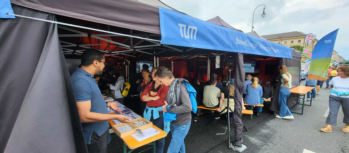Mit unserer Veranstaltung STREET SCIENCE 2025 konnten wir erneut auf dem Münchner ZAMANAND Festival die Bürgerschaft zu komplexen Themen der Wissenschaft in leichter Sprache informieren und zum Mitmachen einladen. Wie auch schon in 2024 war es eher naß und kalt, was aber niemanden davon abgehalten hat, das Straßenfestival rund um den Odeonsplatz und den Stand der TUM zu besuchen.