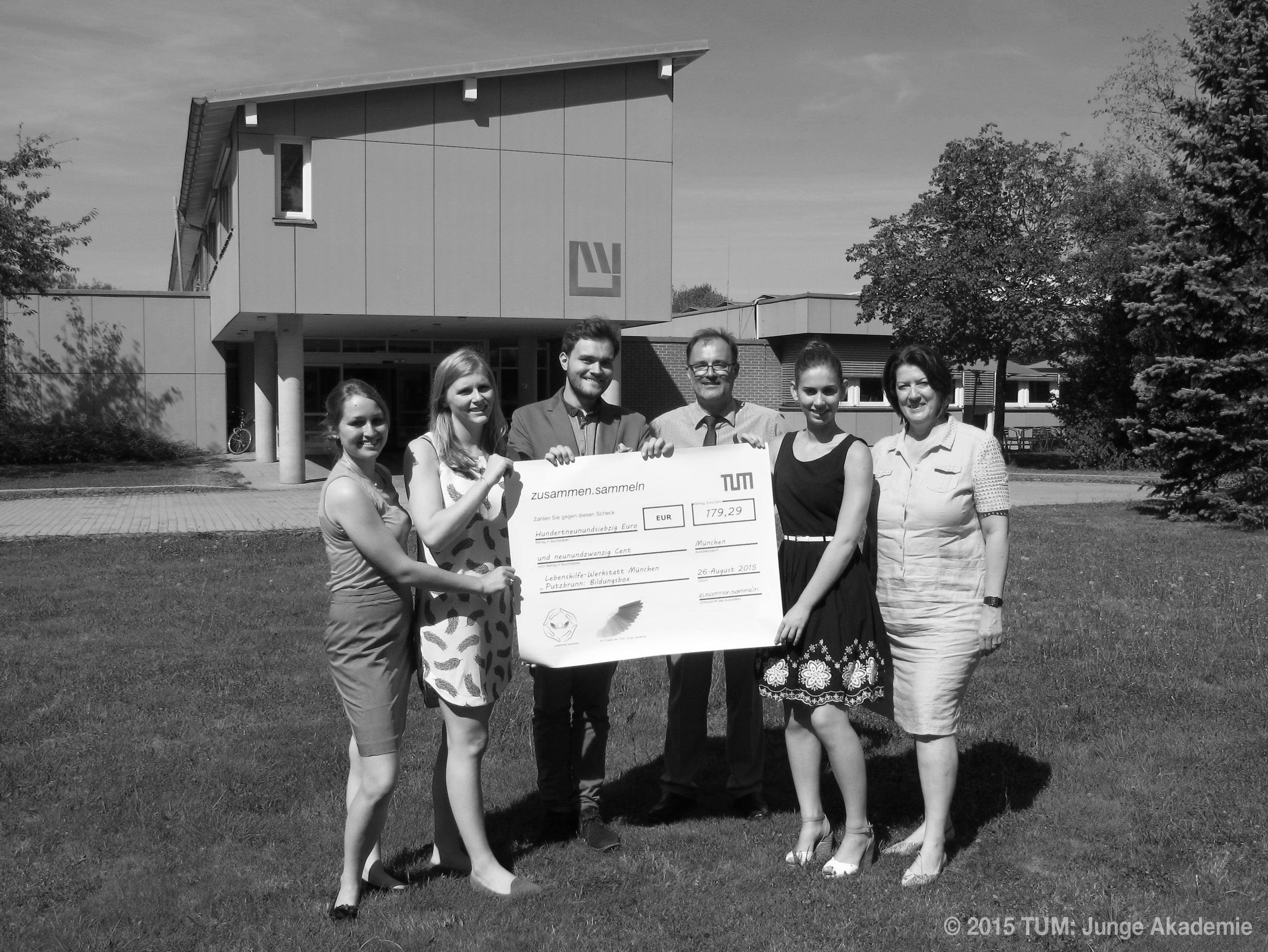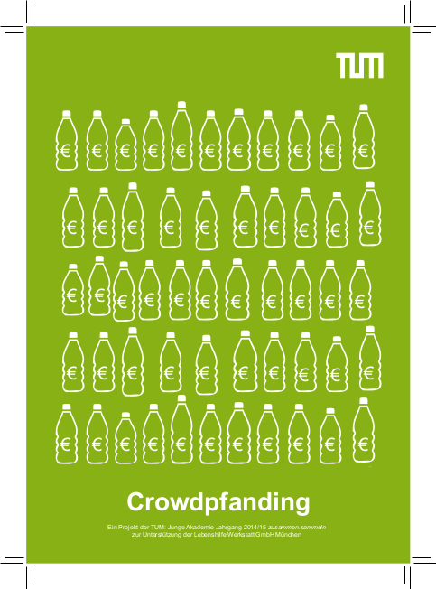 Studierenden und Mitarbeiter an der TUM konnten ihre Pfandflaschen spenden. Der gesamte Erlös aus dem Pfand ging an die Lebenshilfe Werkstatt München. Außerdem wurde mit den gesammelten Deckeln die Aktion "500 Deckel für ein Leben ohne Kinderlähmung" unterstützt, die von Rotary-und Rotaract-Clubs organisiert wird.